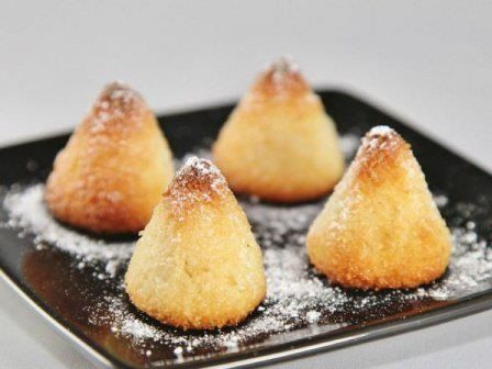 6. Sonra bu kürələrə konus forması verib, içərisinə yağlanmış kalka sərilmiş tavaya düzün.